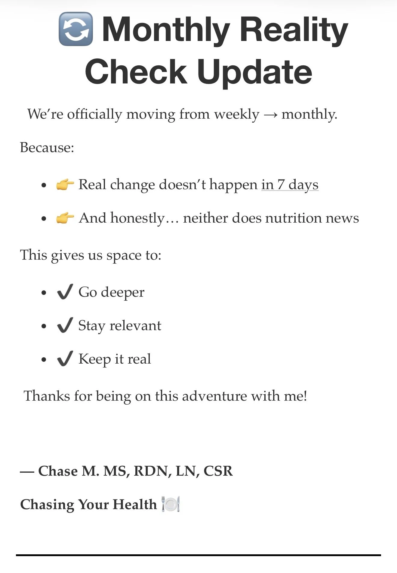 Monthly Reality Check: April 2026 Apr 1 Written By Chase Merfeld Issue #9 | April Edition |04/01/2026 Chase Merfeld https://www.chasingyourhealth.com
